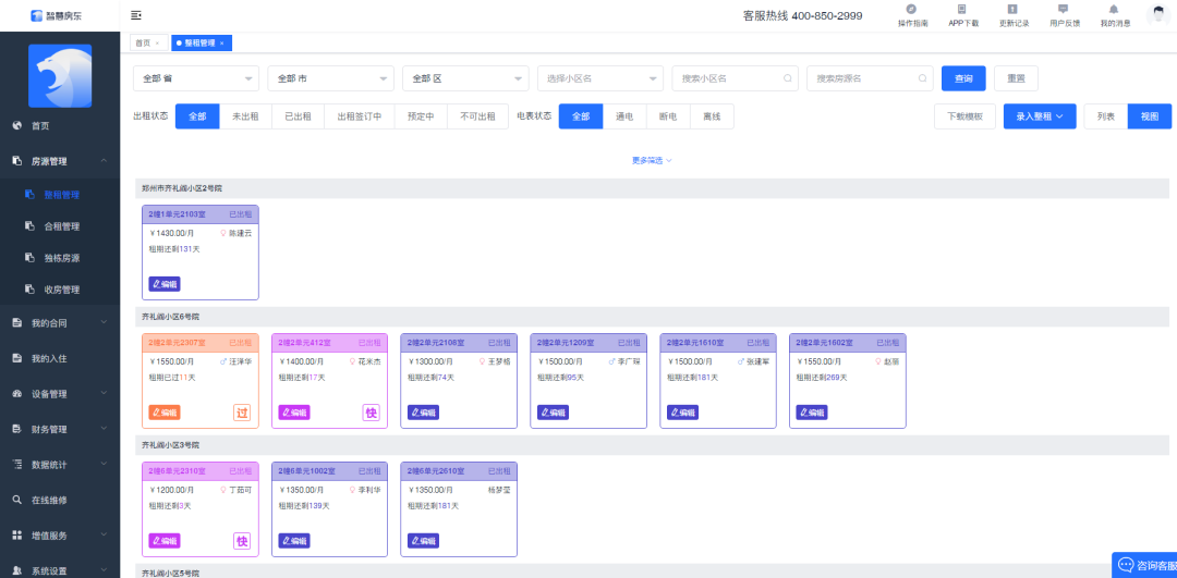 接入智慧房东系统后,房源状态会使用不同的颜色标记出来,让管理员一目了然;用户的入住/退宿/换宿业务可全程通过智慧房东软件进行在线操作,原来可能需要1小时甚至更多的时间来处理,现在仅需5分钟即可轻松搞定。